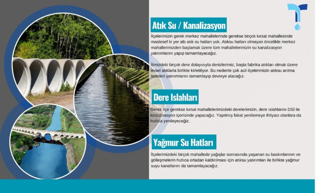 Yüzey sularının barajlar ve göletler vasıtası ile toplanıp sisteme entegre edilmesi konusunda başta DSİ ve diğer kurumlarla hızlıca çalışmaya başlayacaklarını dile getiren Belediye Başkan adayı Cüneyt Yüksel; Bu sayede yer altı su kaynaklarımızı korumuş olacağız. Aksi halde ilimiz ansızın büyük bir susuzlukla karşı karşıya gelebilir dedi.İlk olarak Çorlu, Ergene, Çerkezköy,Kapaklı ve Saray için, Kömürköy, Kızılağaç,Balaban, Yoncalı Barajları,Türkgücü 1 ve 2 , Yenice 2 göletlerimizde ve aynı zamanda Süleymanpaşada İnecik 1-2, Dedecik ve Osmanlı 1-2 gölet yatırımlarını hızlandıracağız dedi.